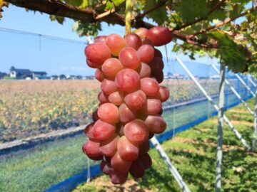 【特徴】種なし、酸味が少なく果肉はしまりがあり果汁豊富で美味しい大粒の巨峰系品種。 -