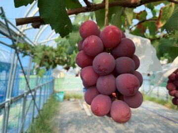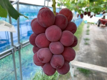 【特徴】超大粒ぶどうで巨峰より糖度が高く、果汁豊富でジューシー、皮離れが良く食べやすい。雨よけハウスに1本のみ栽培しており数量限定! -