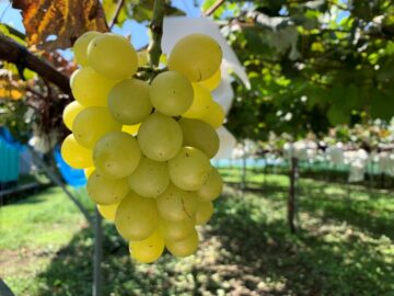 【特徴】種なしで人気のある「シャインマスカット」似たマスカット香がある。皮ごと食べれてとても美味しい。中粒ほどで小ぶりな房のお手ごろぶどう。まだ若木の為、小ぶり。今後に期待! -